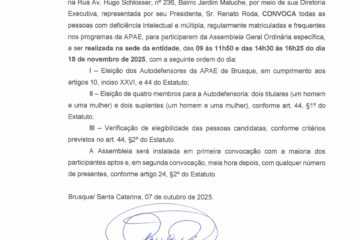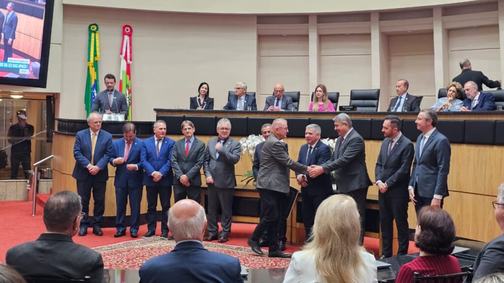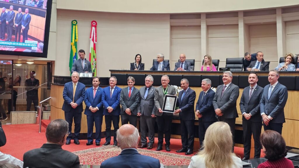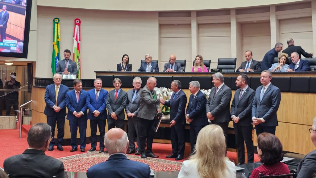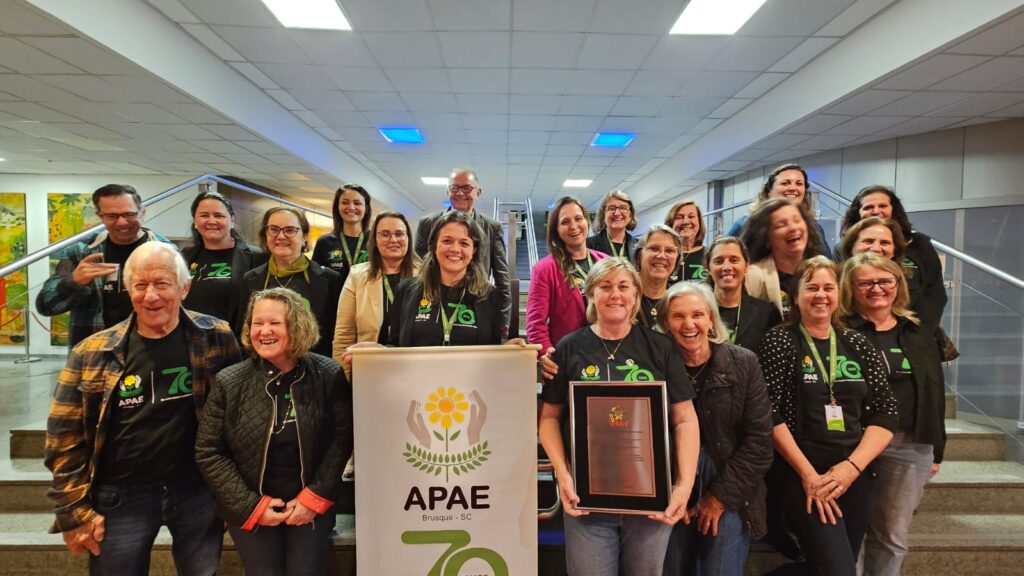 A Associação de Pais e Amigos dos Excepcionais (Apae) de Brusque foi homenageada na última segunda-feira, 24 de novembro, na Assembleia Legislativa de Santa Catarina (Alesc), em Florianópolis. Na ocasião, a entidade brusquense foi reconhecida pelo seu pioneirismo e pelos 70 anos de dedicação, acolhimento e serviços às pessoas com deficiência, bem como por promover a transformação social do Estado. A Sessão Especial da Alesc foi em comemoração dos 20 anos da Lei estadual nº 13.633/2005, popularmente conhecida como “Lei das APAEs”, que garantiu repasses mensais do Fundo Social às Associações de Pais e Amigos dos Excepcionais (Apaes) do Estado.
